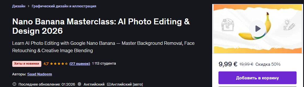 [Saad Nadeem] [Udemy] Мастер-класс Nano Banana: редактирование фотографий и дизайн с использованием ИИ (2025)