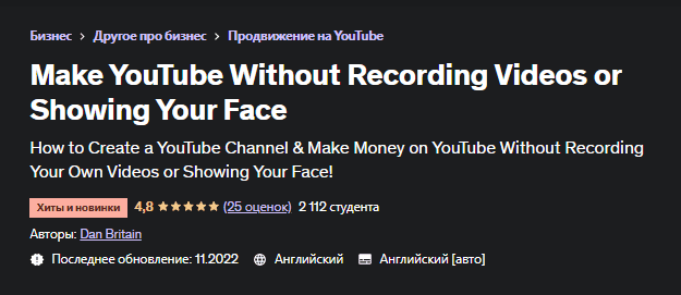 [Udemy] Сделайте YouTube канал, не записывая видео и не показывая свое лицо (2022)