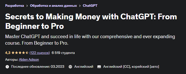 [Udemy] Секреты заработка с ChatGPT: от новичка до профессионала (2023)