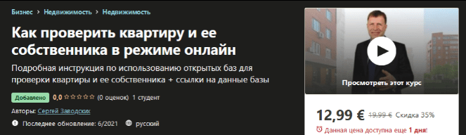 [Udemy] Сергей Заводских - Как проверить квартиру и ее собственника в режиме онлайн (2021)
