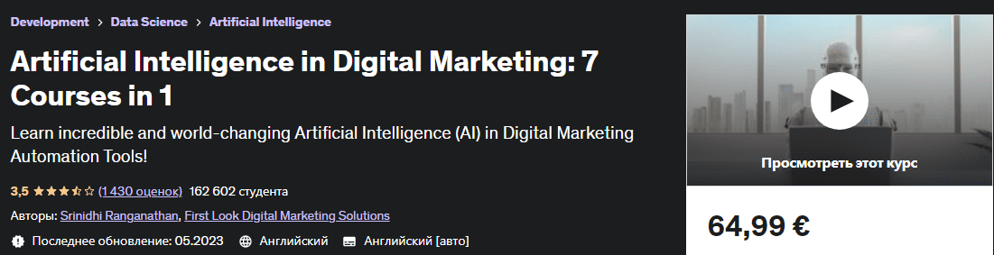 [Udemy] [Шринидхи Ранганатан] Искусственный интеллект в цифровом маркетинге: 7 курсов в 1 (2023)