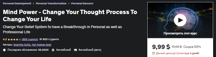 [Udemy] Сила разума — измените свой мыслительный процесс, чтобы изменить свою жизнь (2023)