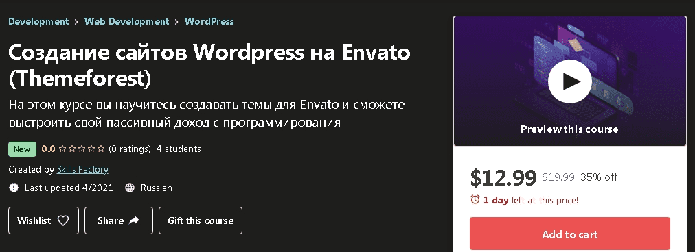 [Udemy] Skills Factory - Создание сайтов Wordpress на Envato (Themeforest) (2021)