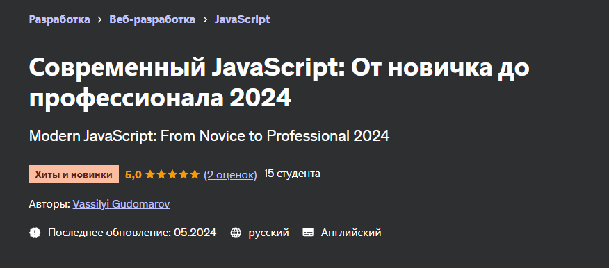 - - Никаких предварительных знаний по JavaScript не требуется - курс подходит как для начинающих, так и для тех, кто хочет обновить свои навыки.