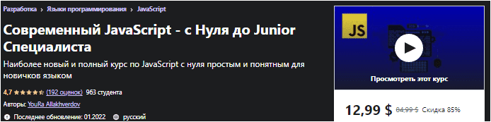 [Udemy] Современный JavaScript - с Нуля до Junior Специалиста (2022)