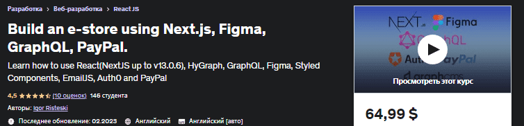 [Udemy] Создайте интернет-магазин с использованием Next.js, Figma, GraphQL, PayPal (2023)