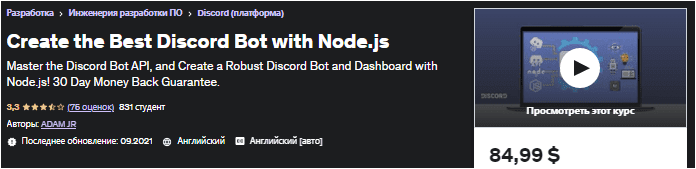 [Udemy] Создайте самого лучшего Discord бота с помощью Node.js (2021)