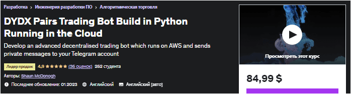 [Udemy] Создан бот для торговли парами DYDX на Python, работающий в облаке (2023)