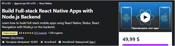 [Udemy] Создание Full-stack Приложений React Native с Node.js (2021)