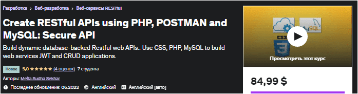 [Udemy] Создание RESTful API с использованием PHP, POSTMAN и MySQL: безопасный API (2022)