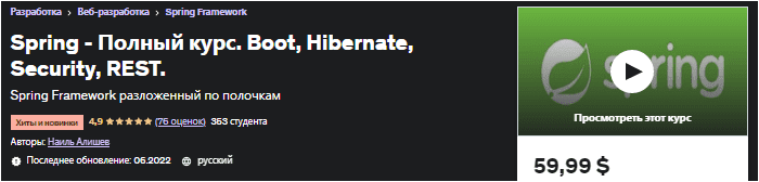 [udemy] Spring - Полный курс. Boot, Hibernate, Security, REST. (2022)