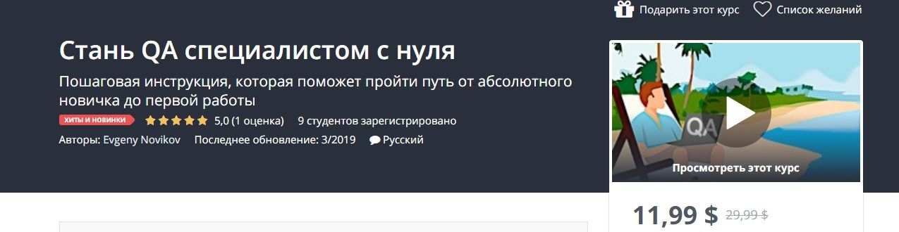 Подробнее: Стань QA специалистом с нуля | Udemy