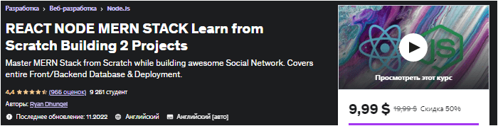 [Udemy] Стек MERN: React Node с нуля + 2 проекта (2022)