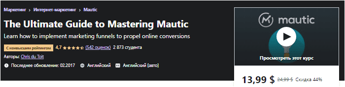 К концу курса вы будете иметь полное представление о Mautic, иметь значительную практику и будете готовы навсегда изменить способ ведения бизнеса в Интернете.