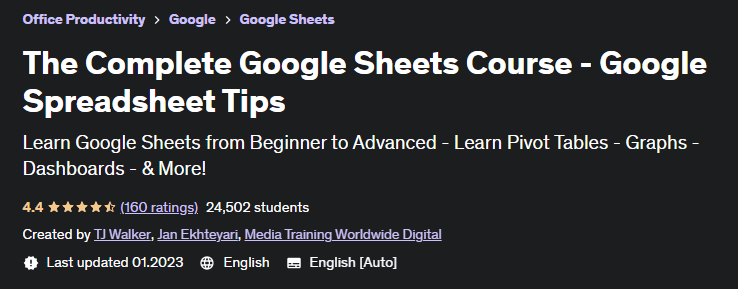 [Udemy] [Ти Джей Уокер] Полный курс Google Таблиц - Советы по работе с таблицами Google (2023)