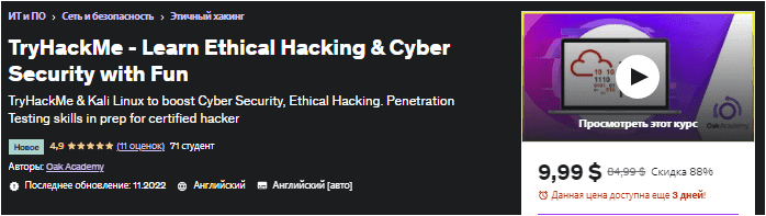 [Udemy] TryHackMe — изучайте этический взлом и кибербезопасность с удовольствием (2022)