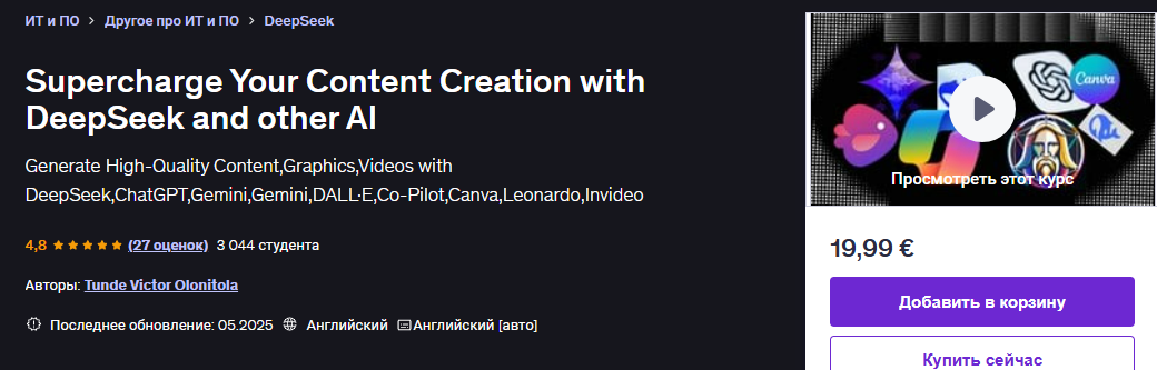 Название: Ускорьте создание контента с помощью DeepSeek и других AI (2025)