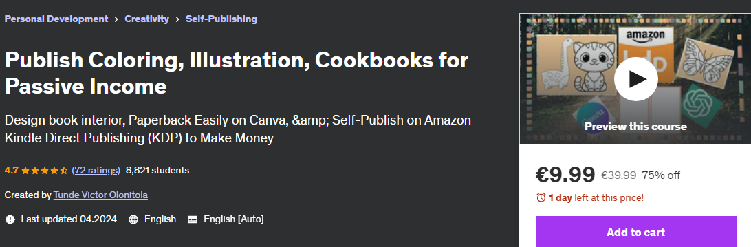 [Udemy] [Tunde Victor Olonitola] Публикуйте раскраски, иллюстрации и кулинарные книги для пассивного дохода (2024)