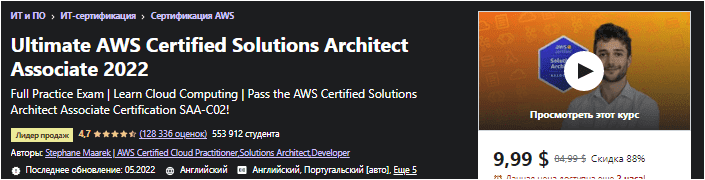 Этот курс AWS Certified Solution Architect Associate отличается от других курсов, которые вы найдете на Udemy. Осмелюсь сказать, что лучше (а вам судить!)