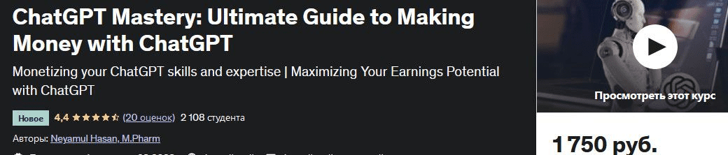 Готовы ли вы раскрыть весь потенциал ChatGPT и зарабатывать при этом деньги? Этот всеобъемлющий курс является исчерпывающим руководством по освоению ChatGPT и его использованию для создания прибыльных возможностей заработка.