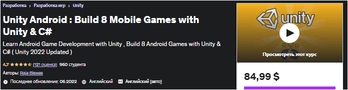 [Udemy] Unity Android: Создание 8 мобильных игр с помощью Unity и C# (2022)