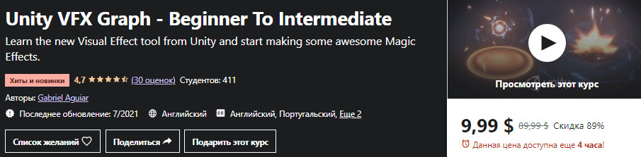 Чего же ты ждешь? Начните учиться прямо сейчас, как создавать магические заклинания и особые навыки для игр. Он перенесет вас с точки зрения новичка на средний уровень в Unity VFX Graph . Кроме того, вы увидите несколько интересных советов и уловок и познакомитесь с новым инструментом Visual Effect от Unity.