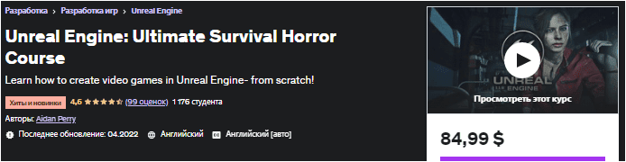 Этот курс научит вас как создать игру ужасов на выживание, обучая всем набором навыков основам создания игр с помощью одного из самых популярных жанров в игровых медиа. Мы пройдем шаг за шагом через процесс создания игры, чтобы показать, как мы можем создать персонажа с нуля, хорошо продуманный игровой процесс, классическую и продвинутую механику ужасов, искусственный интеллект и многое другое.