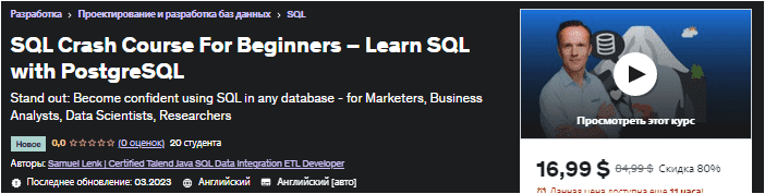 [Udemy] Ускоренный курс SQL для начинающих — изучайте SQL с помощью PostgreSQL (2023)