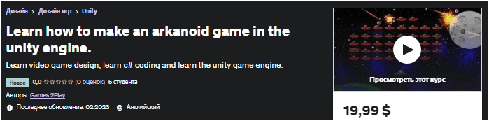 [Udemy] Узнайте, как сделать арканоид на движке Unity (2023)
