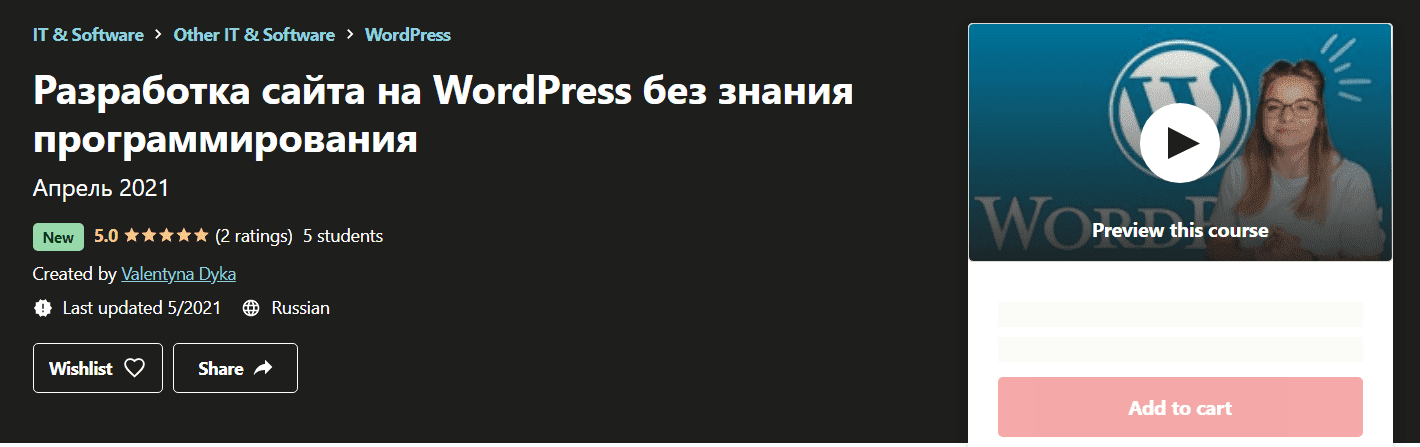 [Udemy] Valentyna Dyka - Разработка сайта на WordPress без знания программирования (2021)