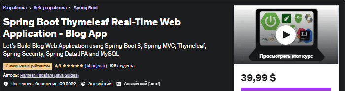[Udemy] Веб-приложение Spring Boot Thymeleaf в реальном времени — приложение для блога (2022)