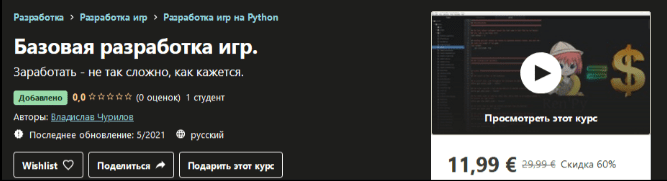 [Udemy] Владислав Чурилов - Базовая разработка игр (2021)