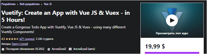 [Udemy] Vuetify: Создайте Приложение с Помощью Vue JS и Vuex - за 5 часов! (2022)