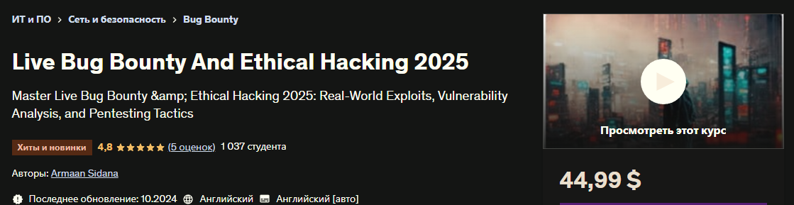 Название: Живой баг-баунти и этический хакинг 2025 (2024)