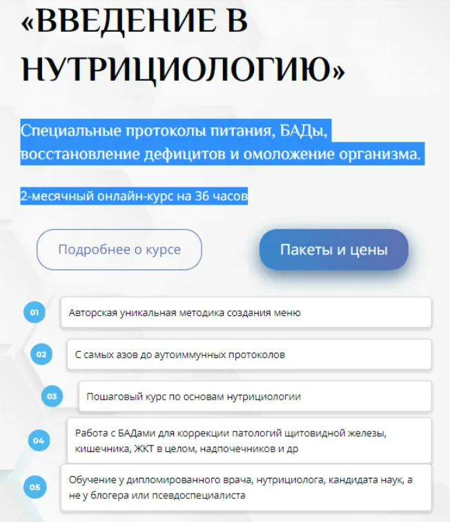 - Автор книги «Маркеры старения. 10 шагов к вечной молодости», автор образовательных курсов для врачей и специалистов по питанию