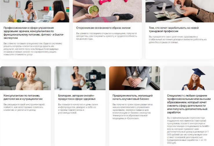 - Дополнительные модули по желанию: бьютификация, спортивная нутрициология, беременность