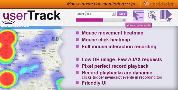 С помощью классического программного обеспечения для аналитики вы можете узнать, что пользователь X перешел со страницы A на страницу B, а затем ушел. Вы когда-нибудь задумывались над тем, что пользователи действительно делают на ваших страницах? Как они перемещают курсор (обратите внимание, что в 80% случаев глаза пользователя следуют курсору), когда они нажимают кнопку, как они взаимодействуют с вашими виджетами javascript, какая часть вашего сайта привлекает наибольшее внимание и т. д. UserTrack делает именно это!