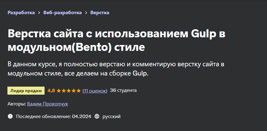 [Вадим Прокопчук] [Udemy] Верстка сайта c использованием Gulp в модульном Bento стиле (2024)