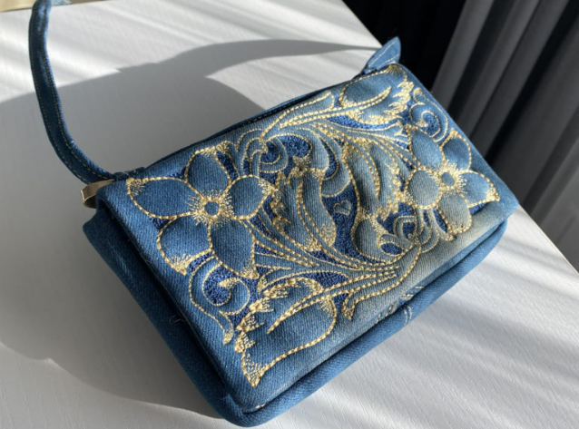 Лёгкая, изящная, маленькая и приятная на ощупь, с завораживающим объёмным рисунком на джинсовой ткани – она украсит ваши дни и особенные вечера.
