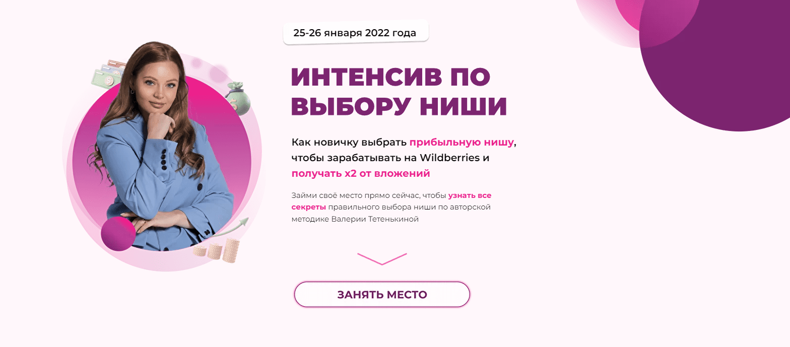 Займи своё место прямо сейчас, чтобы узнать все секреты правильного выбора ниши по авторской методике Валерии Тетенькиной