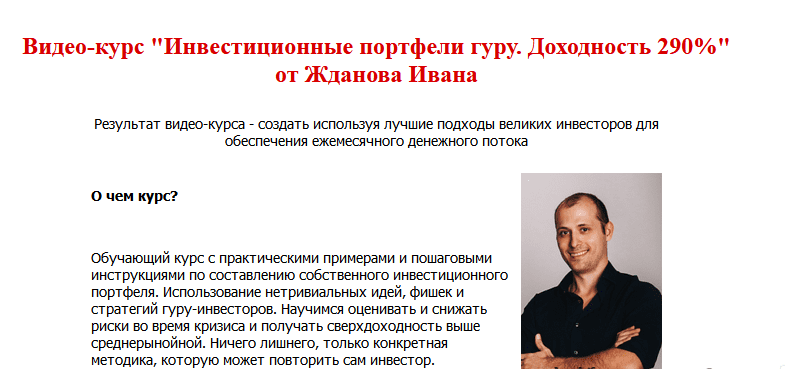 Обучающий курс с практическими примерами и пошаговыми инструкциями по составлению собственного инвестиционного портфеля. Использование нетривиальных идей, фишек и стратегий гуру-инвесторов. Научимся оценивать и снижать риски во время кризиса и получать сверхдоходность выше среднерынойной. Ничего лишнего, только конкретная методика, которую может повторить сам инвестор.
