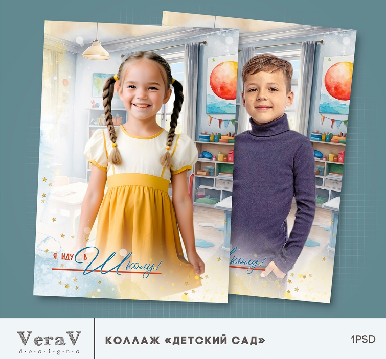 В подарок - шаблон индивидуального коллажа для ребенка в таком же стиле.