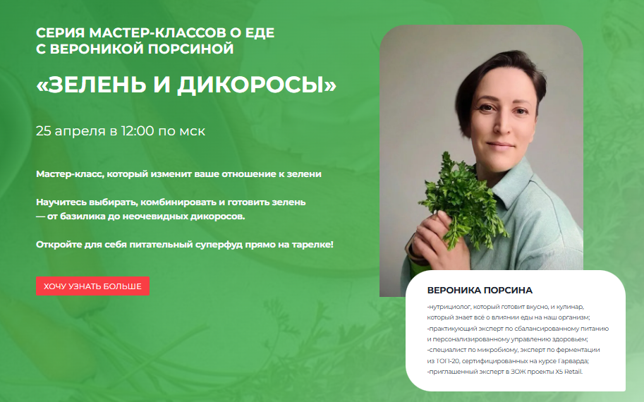 Серия мастер-классов о еде с Вероникой Порсиной «Зелень и дикоросы»