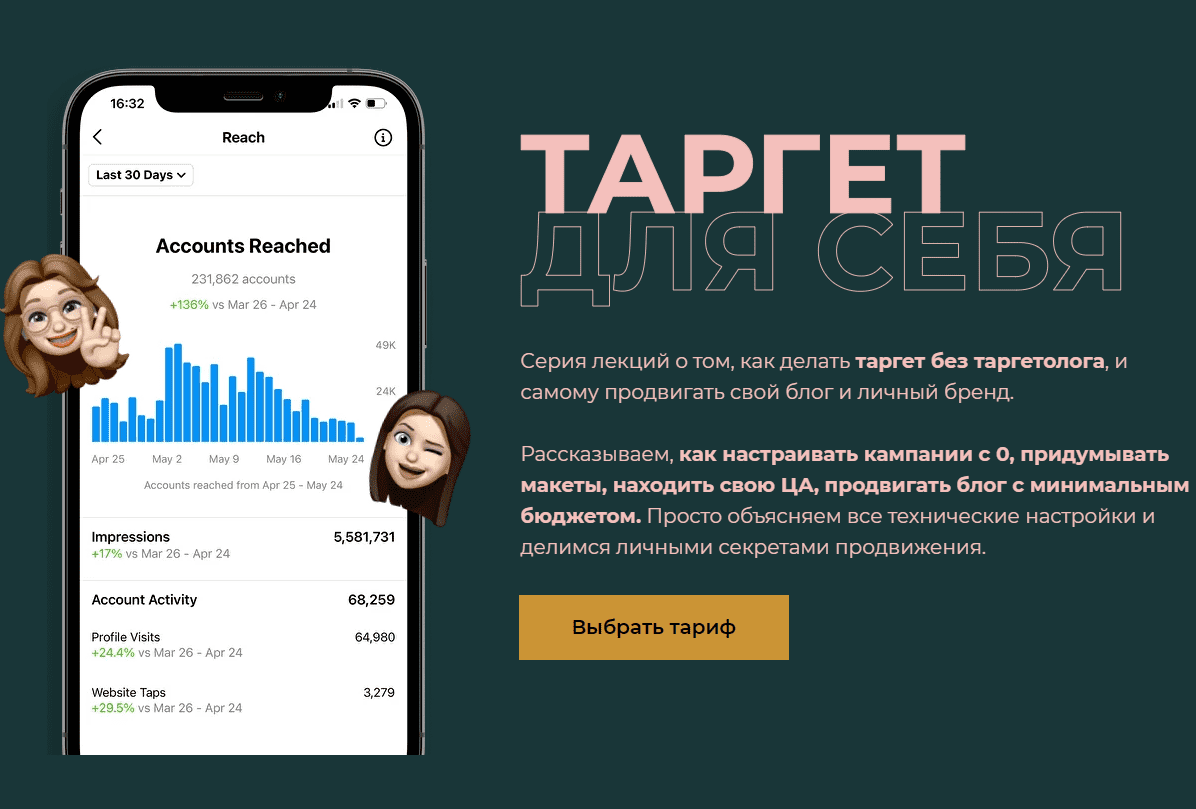 «Таргет для себя» рассчитан для всех, кто хочет обучиться таргетированной рекламе для продвижения своего блога, маленького бизнеса, понимания работы с таргетологом.