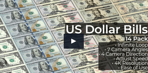 US Dollar Bills – 14 Pack After Effects Project File 4K Resolution (3840×2160) 14 Pack (7 Front, 7 Back) Infinite Loop 7 Camera Angles 4 Camera Direction Adjust Speed Ease of use...videohive.net