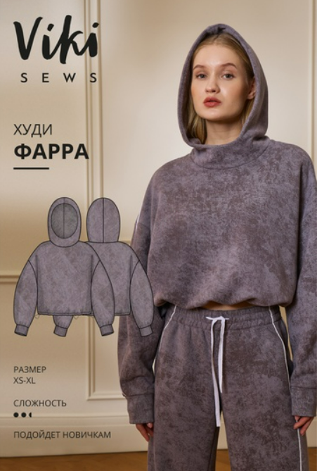 Выкройка худи большого объема, прямого силуэта. Воротник-стойка, переходящий в капюшон.vikisews.com