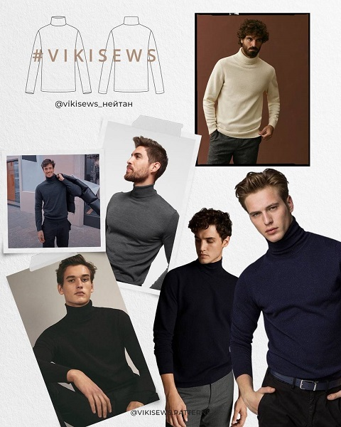 Выкройка водолазки малого объема, прилегающего силуэта. Рукав втачной, длинный, прилегающий. Горловина оформлена двойным высоким воротником. Длина изделия ниже линии бедер.