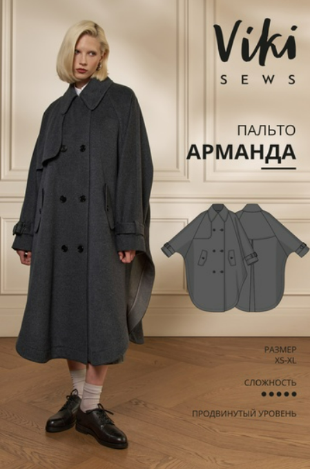 Название: Выкройка Арманда пальто-кейп. Размеры XS-XL. Рост 162-168 (2024)