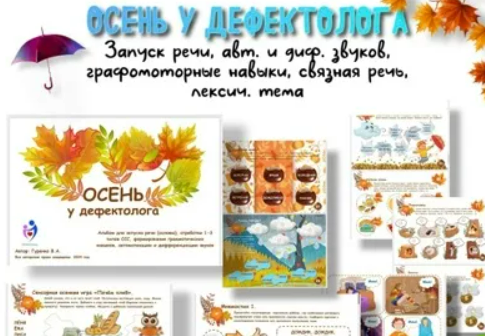 - запуск и РР, отработка 1-3 типов ССС, мануальный праксис, развитие связной речи, межполушарное развитие, авт и диф звуков Л и Ль, Р и Л, лексическая тема «Осень», грамматика, мнемотаблицы и схемы, составление рассказов по картинкам, что сначала и что потом, звуки раннего онтогенеза, сенсорные игры и др