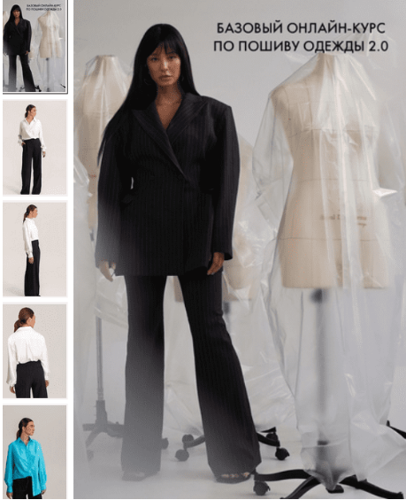 - Вы на практике отработаете технологию и сошьёте актуальную базу — юбку, брюки, блузку и платье, которые будете носить, а не закинете в шкаф.
